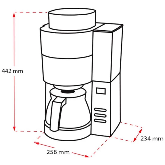 - Kapazität des Behälters für gemahlenen Kaffee: