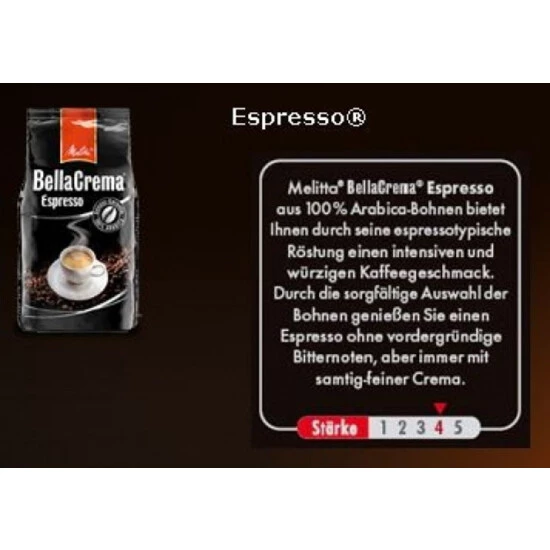 | Name | Melitta Bella Crema Espresso – Röstkaffee in ganzen Bohnen |