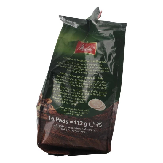 Aufbewahrungshinweis: Kaffeepads gut verschlossen, kühl und trocken aufbewahren. Nach dem Öffnen innerhalb von zwei Wochen verbrauchen. Bitte legen Sie das Pad mit dem Melitta®-Logo nach oben in Ihren Pad-Halter ein.