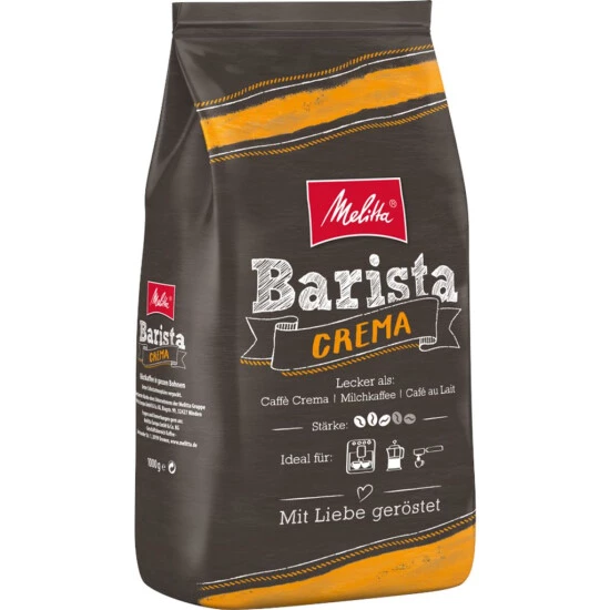Der Melitta® Barista Crema eignet sich zur Zubereitung von Kaffeespezialitäten im Vollautomaten, aber auch gemahlen für Filterkaffeemaschinen, Handfiltration und French Press. Sein volles Aroma entfaltet er bei einem mittleren Mahlgrad.