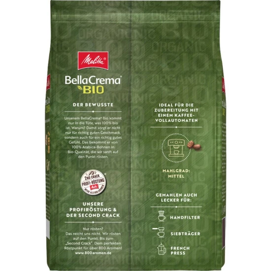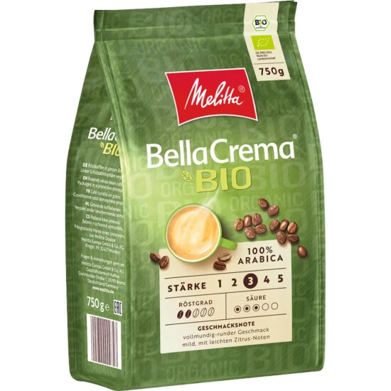 - Melitta Ganze Kaffeebohnen BellaCrema Bioqualität 1 x 750g
