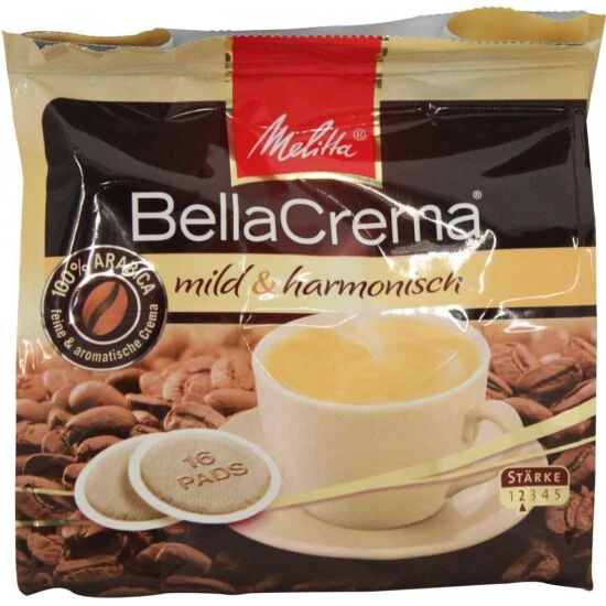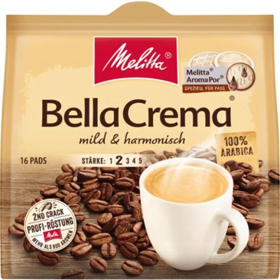 Melitta Bella Crema Kaffeepads mild und harmonisch entstehen durch ausgewählte 100% Arabica-Bohnen und eine sanfte Röstung für einen besonders milden Geschmack und eine feine Crema. Sie sind geeignet für alle gängigen Kaffeepadmaschinen.