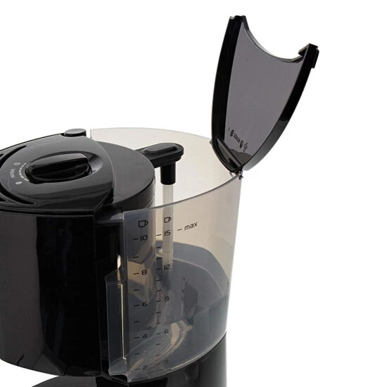 ————– für den Markt: D / F / NL / A / L ———–für 10 Tassen, abnehmbarer Filtereinsatz, transparenter Wasserbehälter, beleuchteter Ein-/Aus-Schalter, Glaskanne mit Tassenskalierung, außenliegende Wasserstandsanzeige,