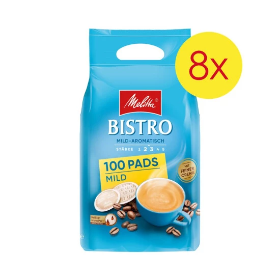 - Melitta Bistro Mild 8 x 100 Pads gemahlener Röstkaffee, je 700g