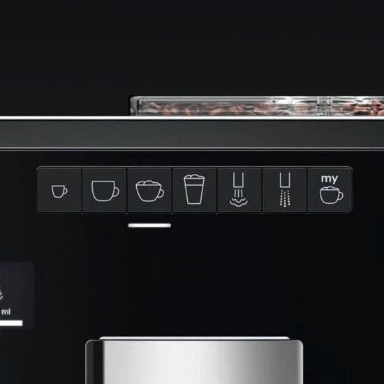Der Kaffeevollautomat Melitta „Caffeo CI E970“ bereitet die beliebtesten Getränke mit nur einer Berührung zu. Du kannst zwei Milchgetränke auf einmal genießen. Zwei separate Bohnenbehälter ermöglichen die Verwendung von zwei Arten von Kaffeebohnen. Vier Benutzerprofile ermöglichen die Erstellung von vier individuellen Menüs. Die komfortable Bedienoberfläche und die automatischen Wartungsprogramme machen den Umgang mit dieser Kaffeemaschine zu einem echten Vergnügen. BELIEBTESTE GETRÄNKE AUF EINEN TASTENDRUCK Die Kaffeemaschine bereitet 4 klassische Kaffeegetränke zu: Espresso, schwarzen Kaffee, Cappuccino und Latte Macchiato. Zusätzlich können Sie Heißwasser, Milchschaum und heiße Milch zubereiten. 2 PORTIONEN VON MILCHBASIERTEN GETRÄNKEN GLEICHZEITIG Die Kaffeemaschine bereitet nicht nur 2 Portionen schwarzen Kaffee gleichzeitig zu, sondern kann auch 2 Getränke mit Milch zur selben Zeit zubereiten. 2 BOHNENBEHÄLTER FÜR UNTERSCHIEDLICHE ARTEN VON KAFFEEBOH