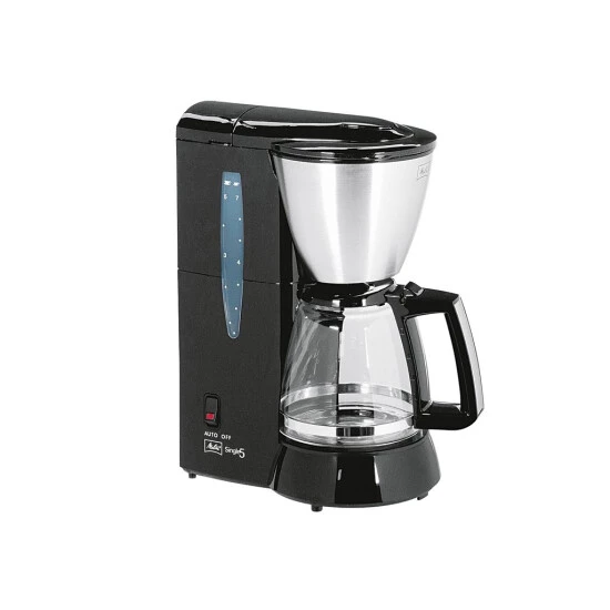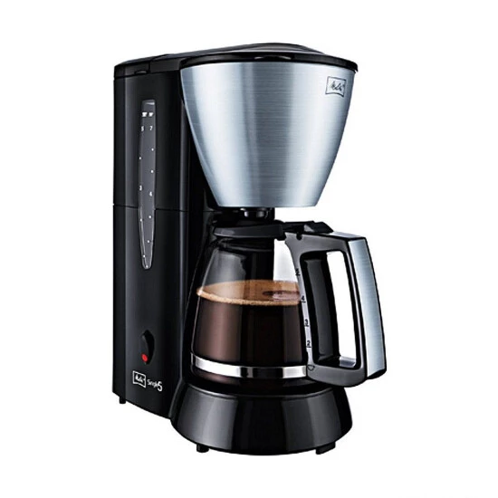 Melitta Single 5. Produkttyp: Filterkaffeemaschine, Kaffee-Einfüllart: Gemahlener Kaffee, Kapazität (in Tassen): 5 Tassen. Produktfarbe: Schwarz, Edelstahl