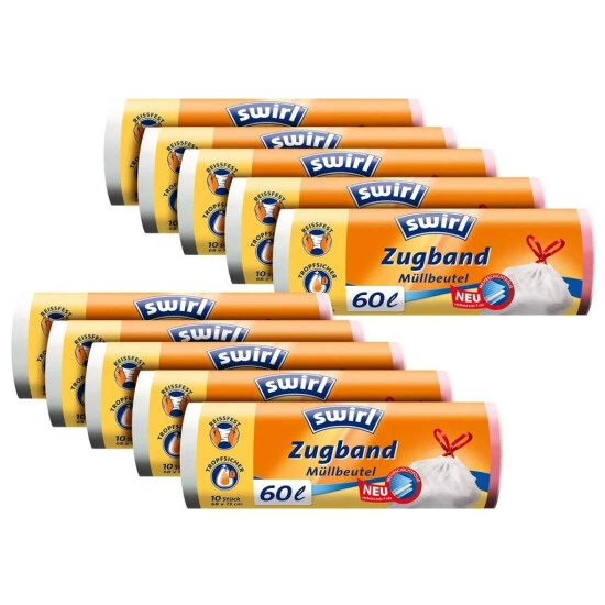 Swirl Müllbeutel mit Zugband reissfest und tropfsicher 60L 10er Pack